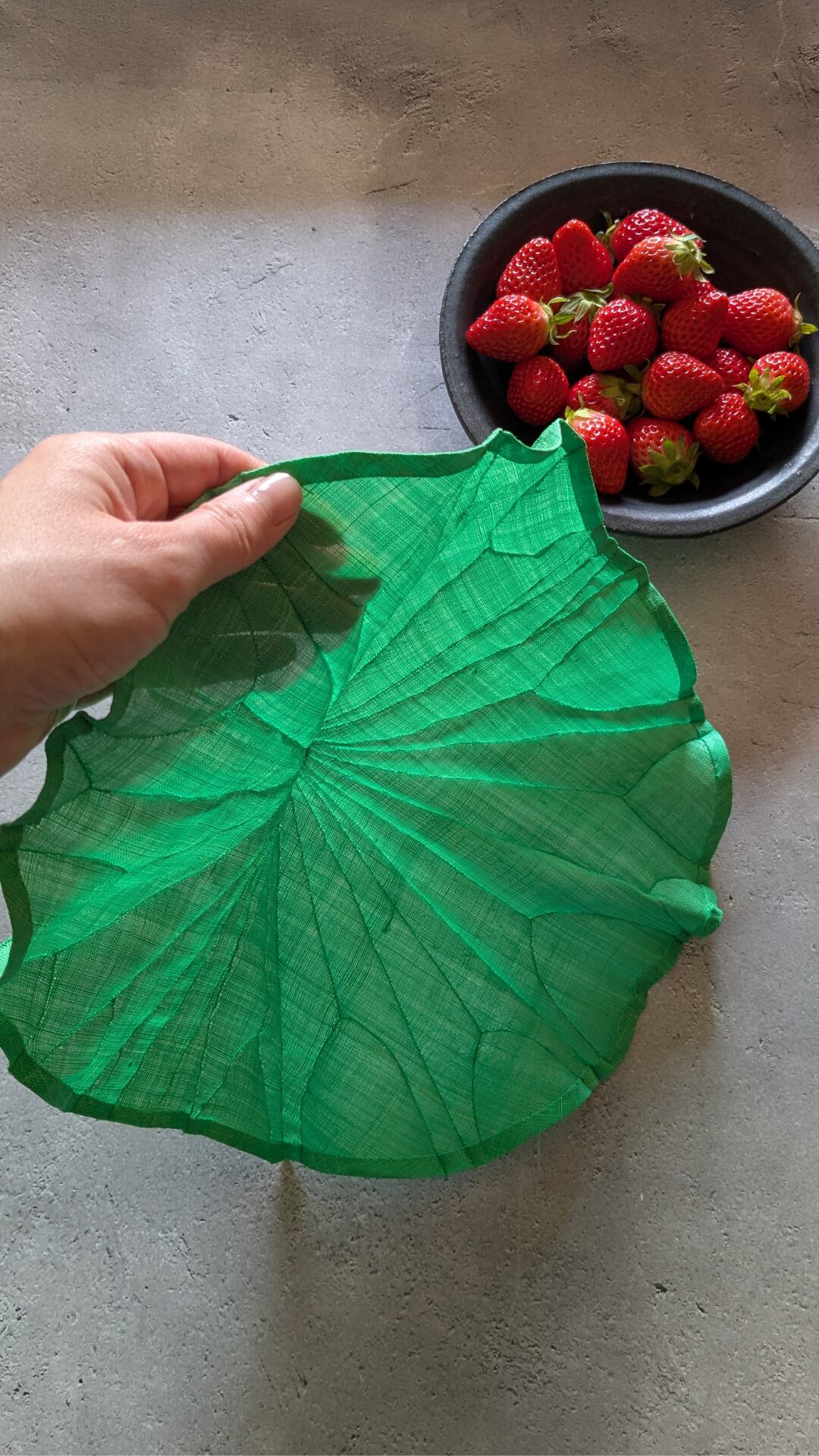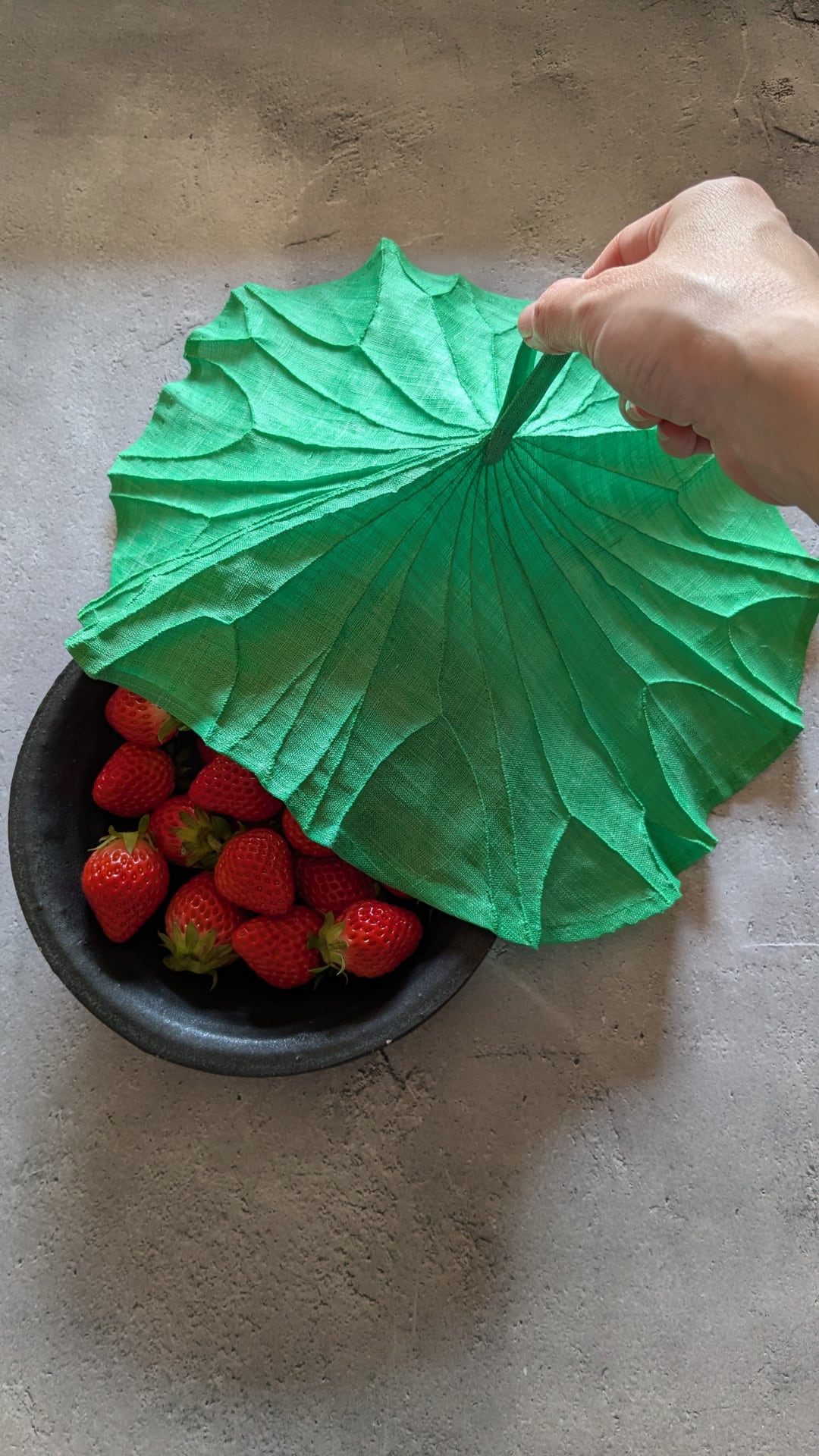 蓮の葉をモチーフにした「埃よけポジャギ」です。