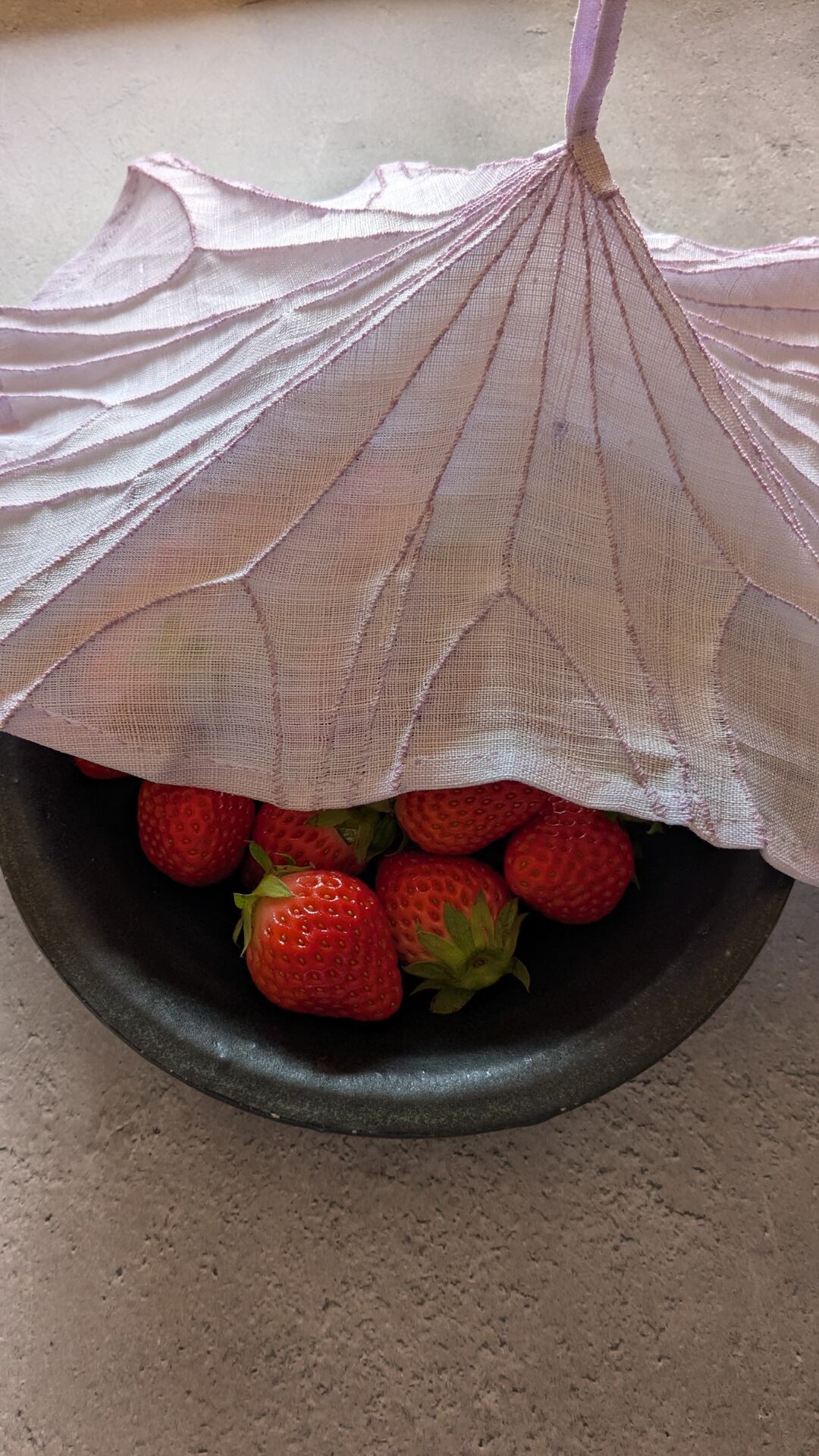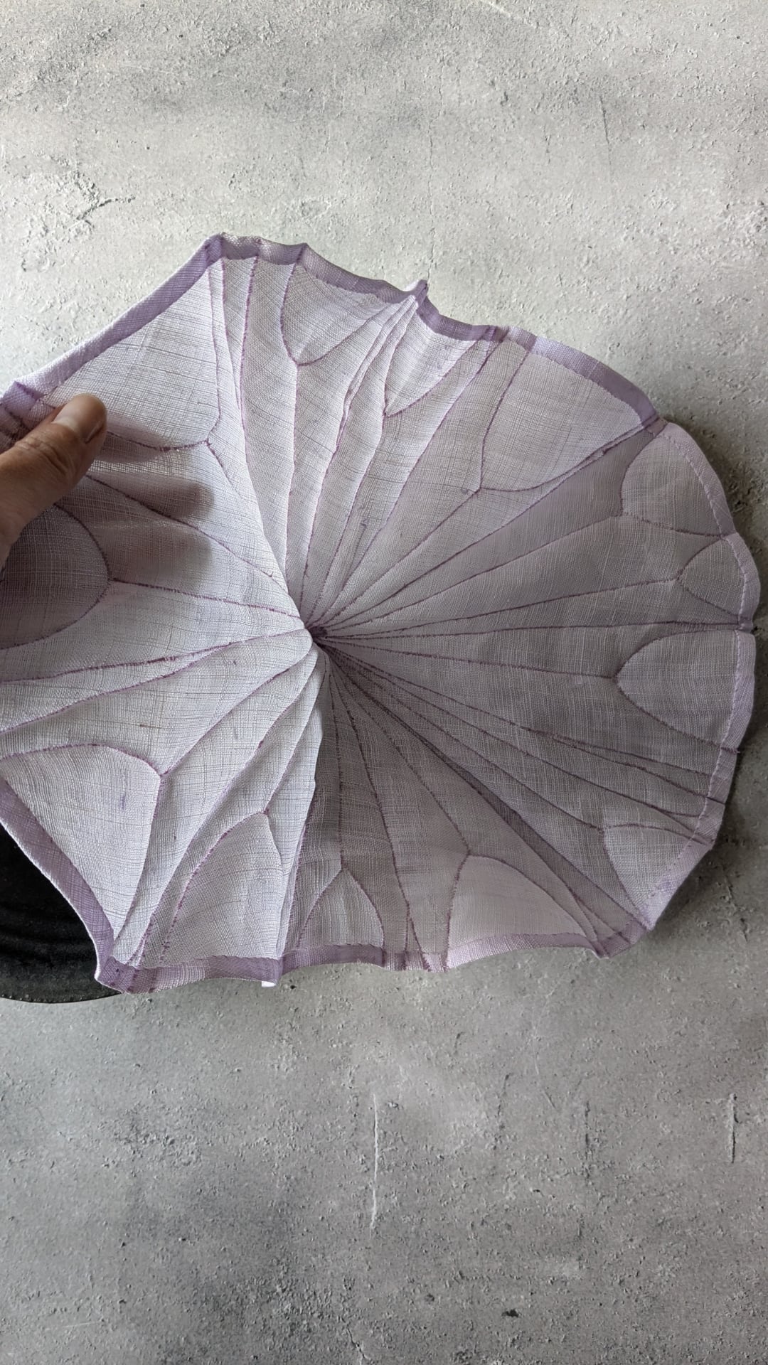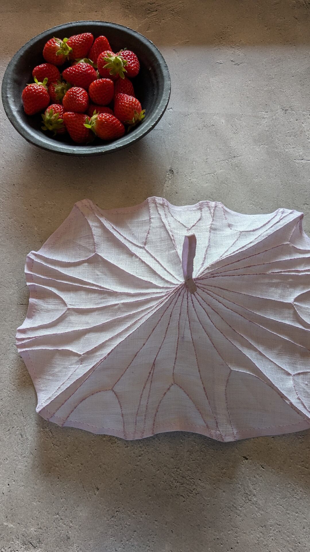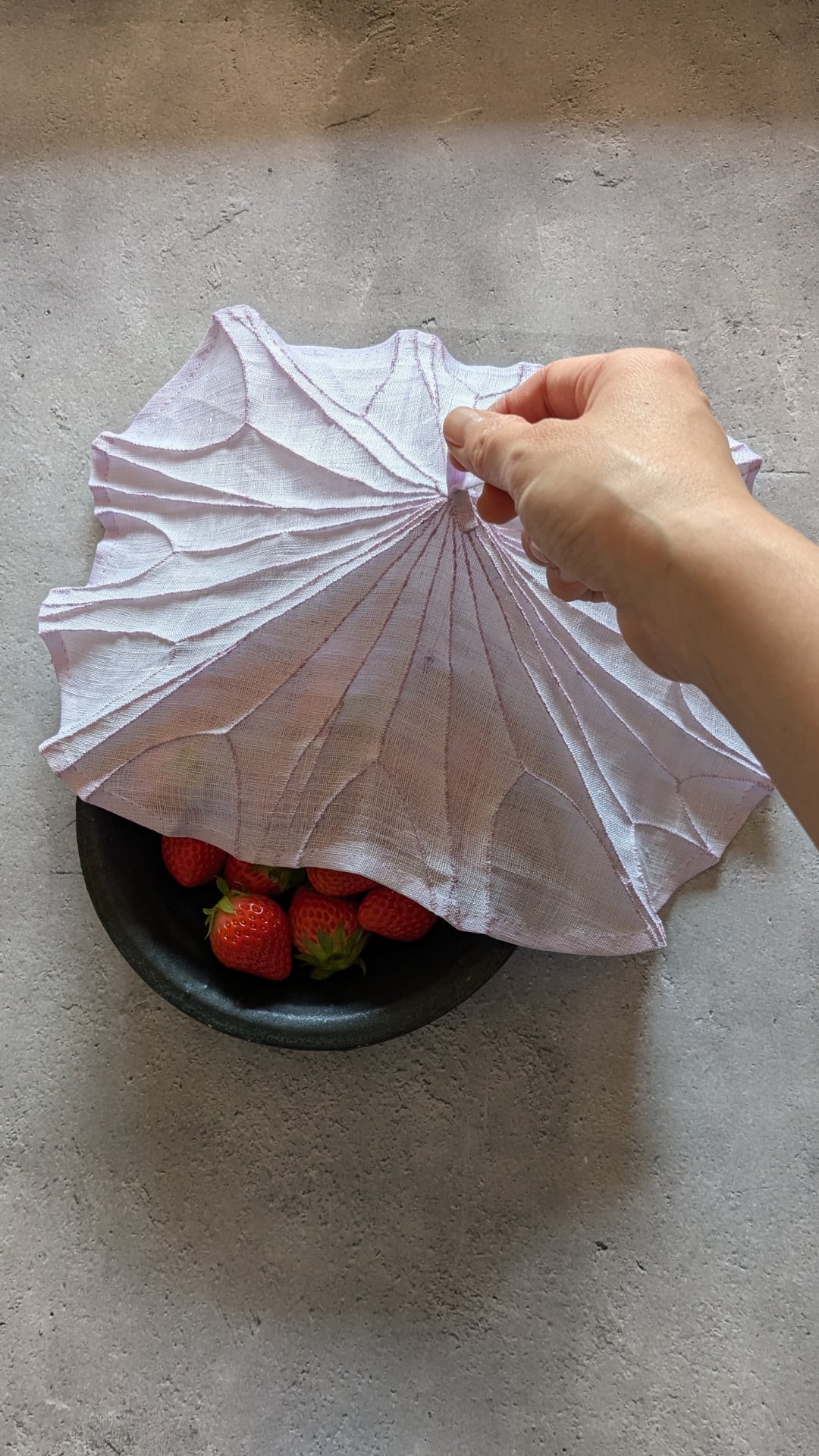 蓮の葉をモチーフにした「埃よけポジャギ」です。