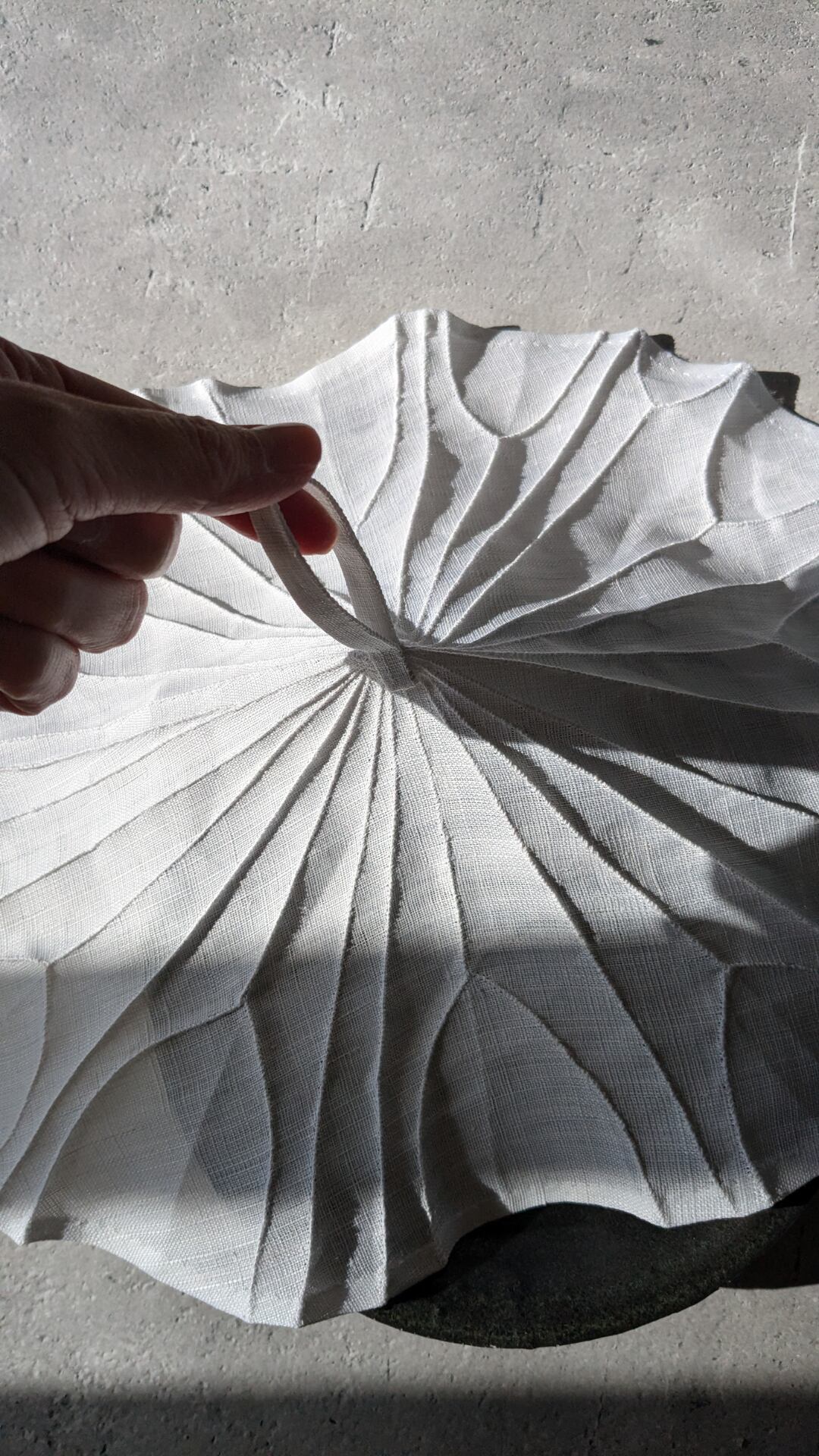 蓮の葉をモチーフにした「埃よけポジャギ」です。