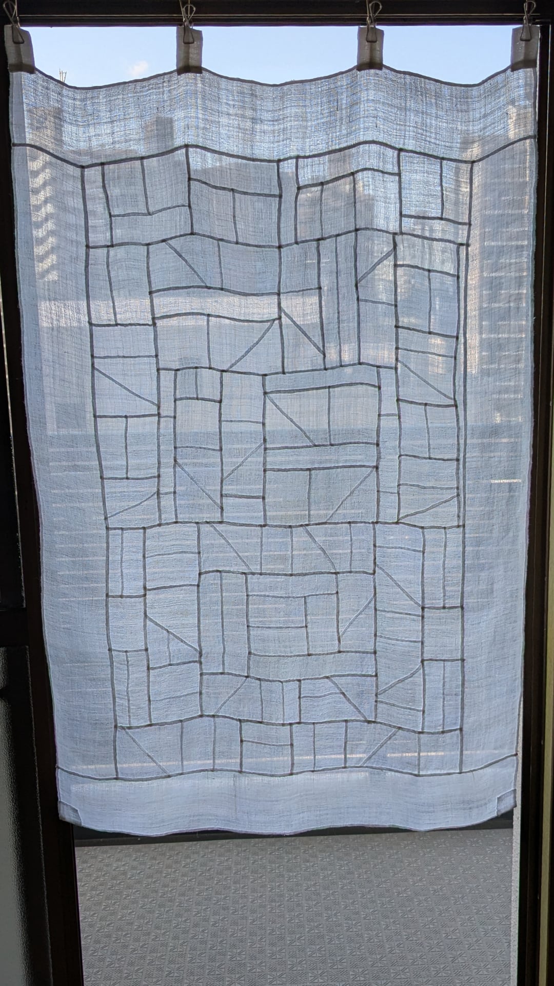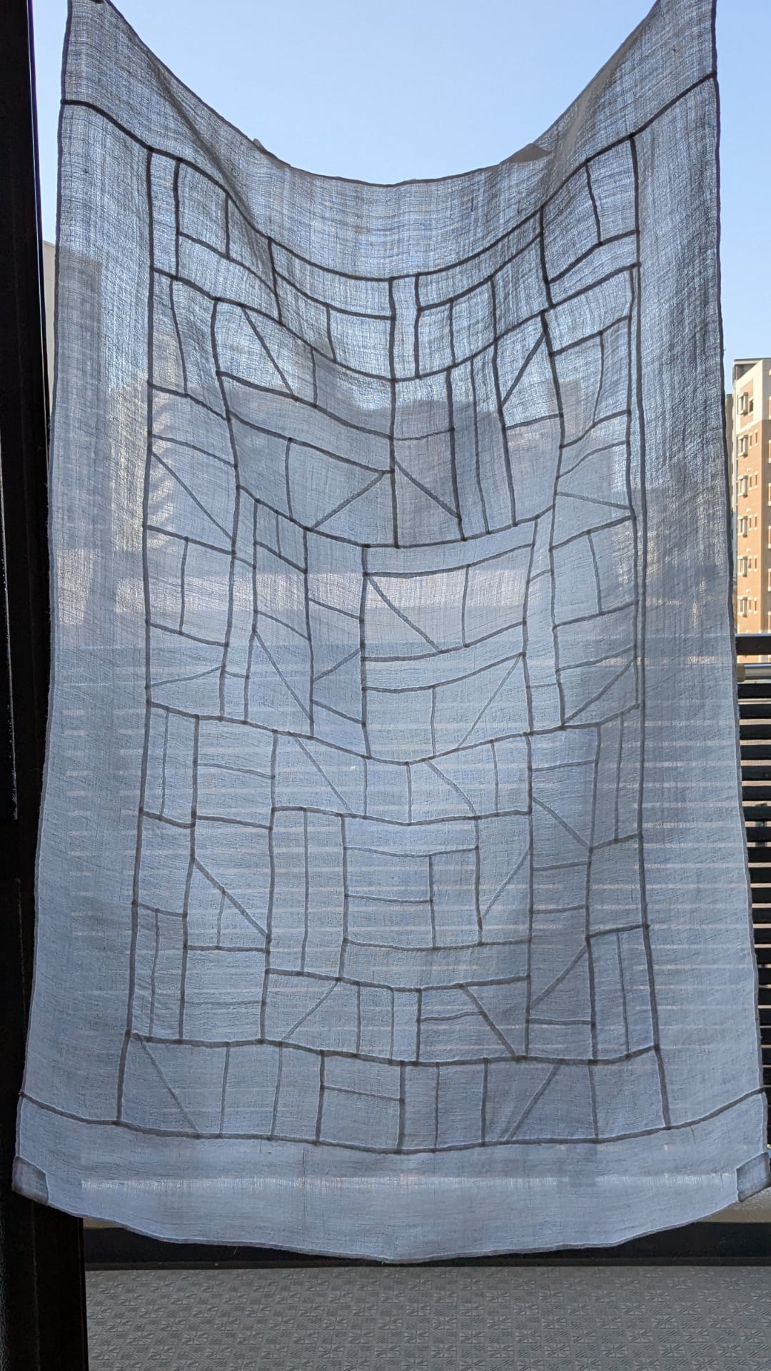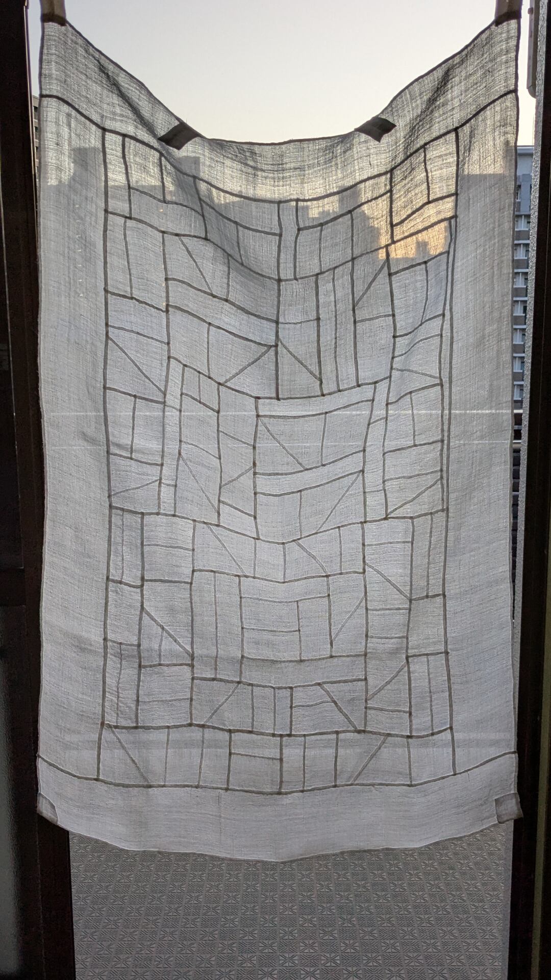 石畳や道のような線のリズムを刻むポジャギです。